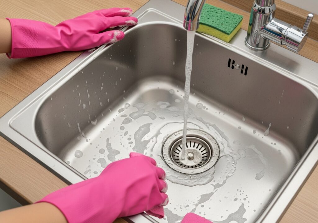 Wie man einen verstopften Abfluss mit Spülmittel und heißem Wasser befreit